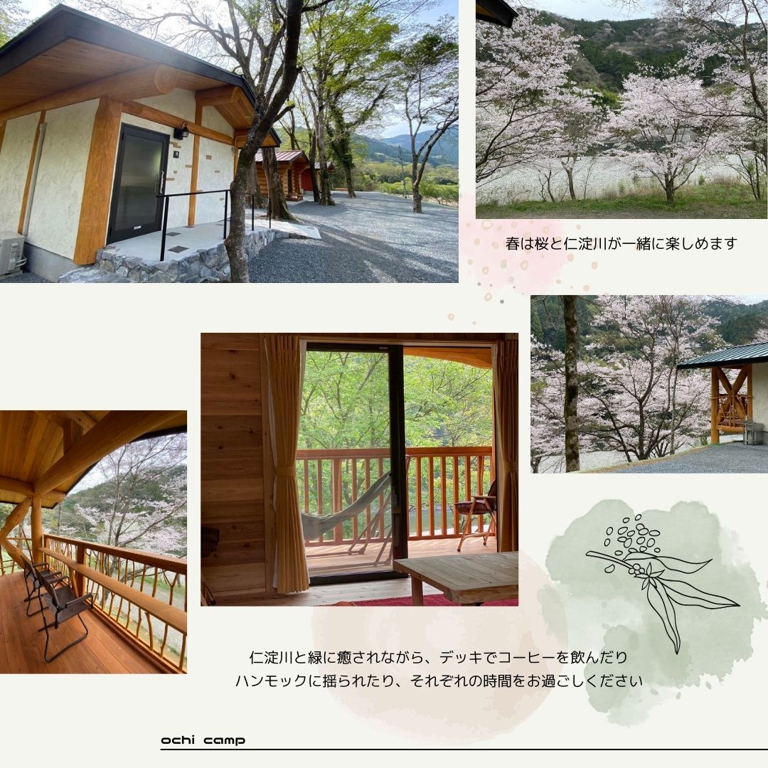 ログハウスは有料、要予約。ログハウス敷地内は宿泊者のみ利用可。